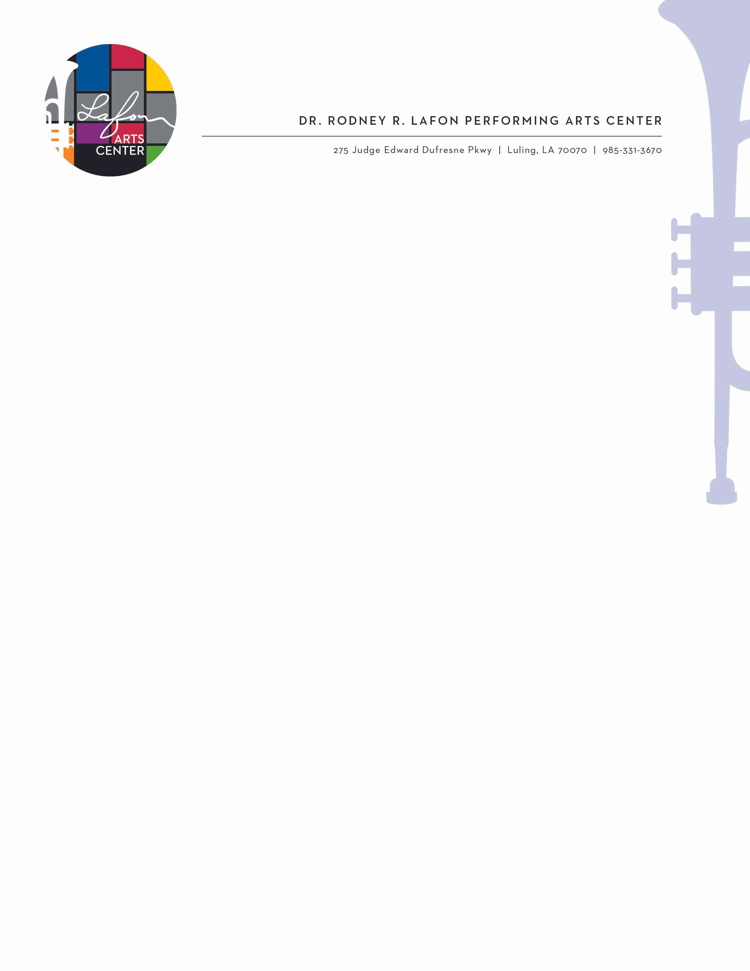 The Lafon Arts logo needed to be able to stand alone yet also pair well with the logo of St. Charles Parish Public Schools. The Lafon Center logo needed to appeal to a demographic that would purchase tickets for high-end productions. In addition the Lafon logo should represent the personality and talent of it’s namesake, Dr. Rodney Lafon, who in addition to being an educator was also a skilled trumpet player. Creative constraints considered during logo design include: